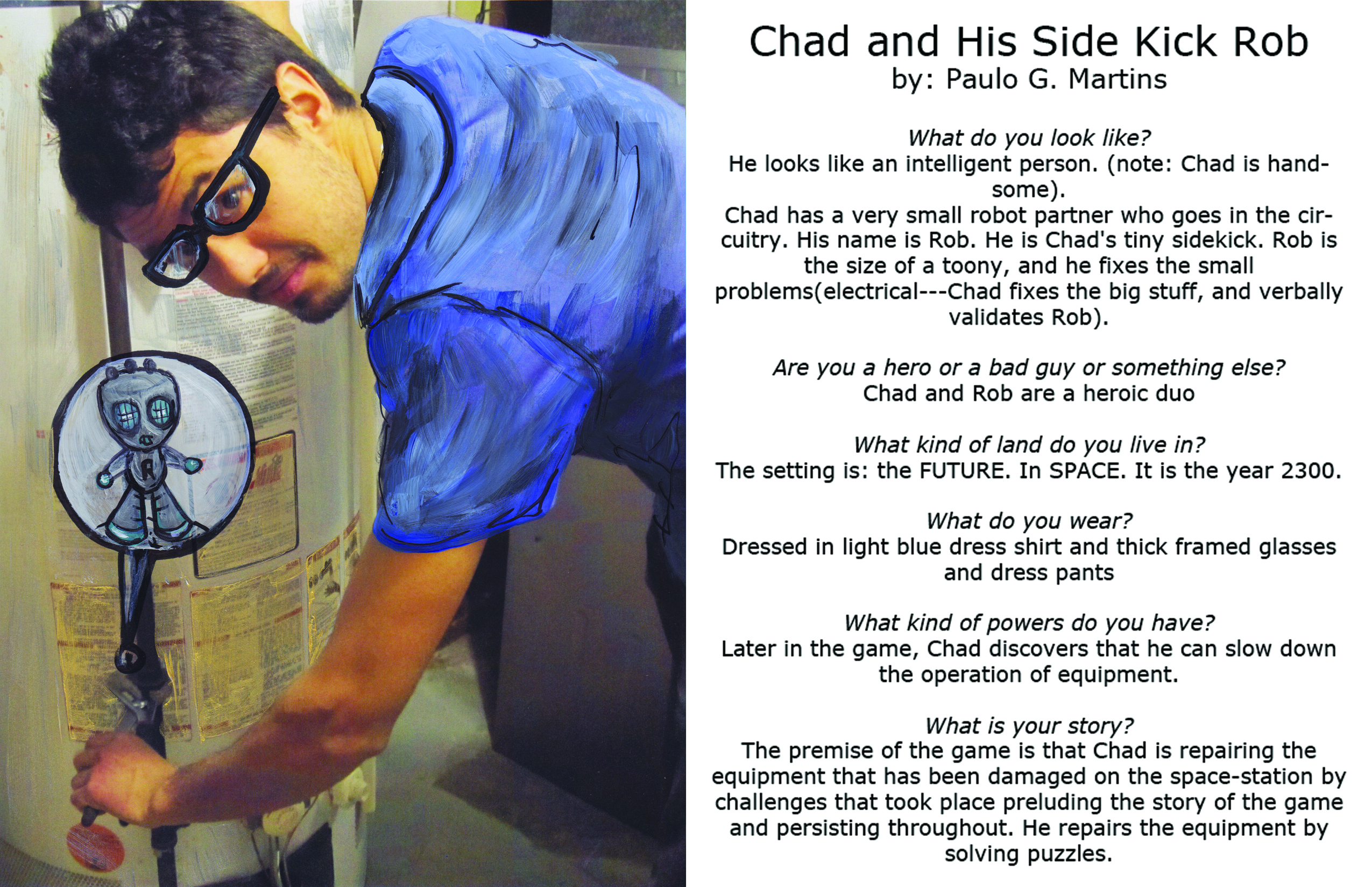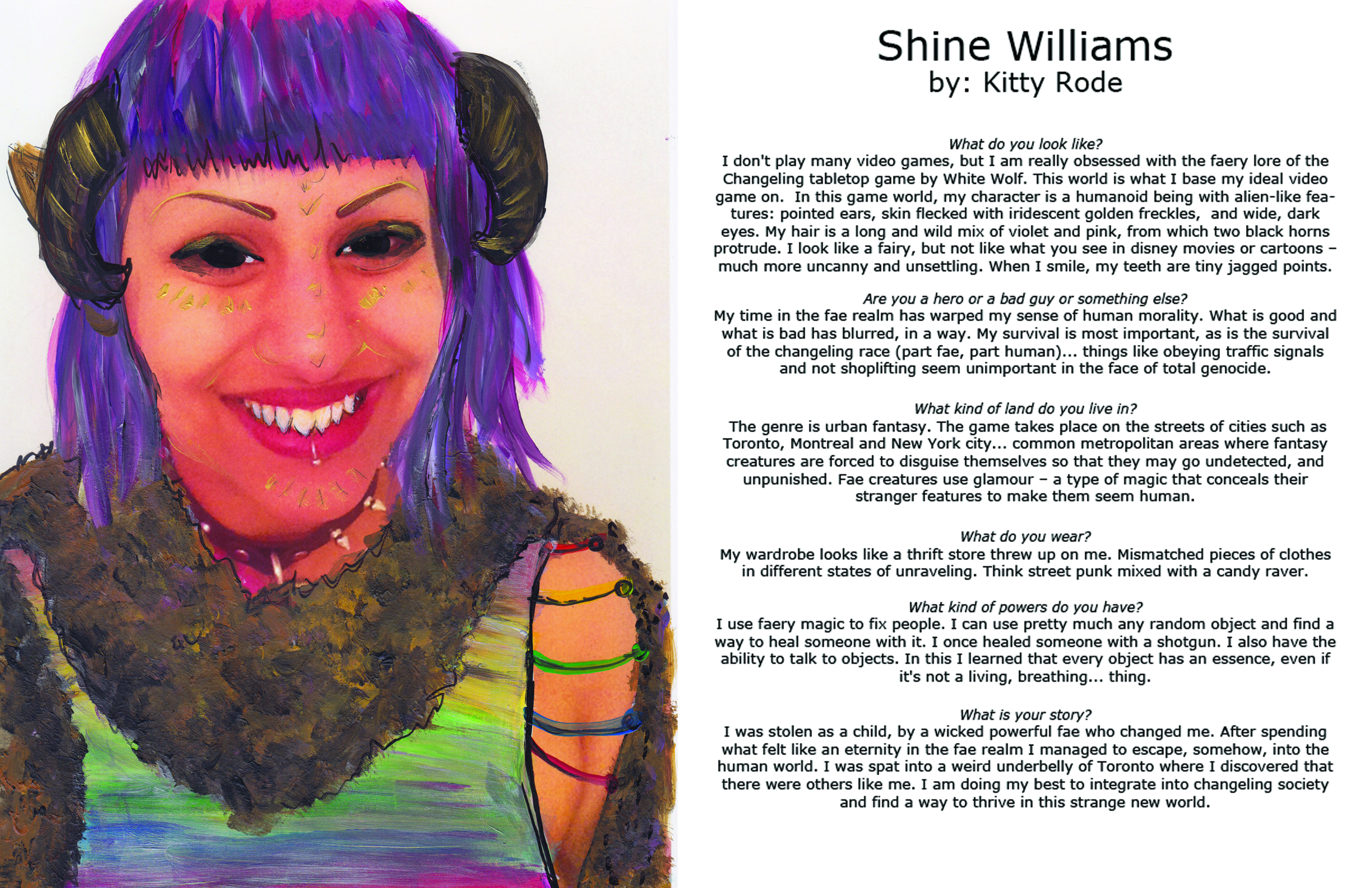 This project was completed as part of my thesis work and features some beautiful people as they see themselves as the heroes of their own video games. They were asked to fill out a questionnaire and send me a photo which I then painted over in accordance to their hero. The painted version was then sent back to them, and credit given to them as a collaborator. This work yearns to highlight the wonder and enthusiasm that I and others have in the video game industry, but also that those feelings of joy are partnered with criticality and the yearning for more.